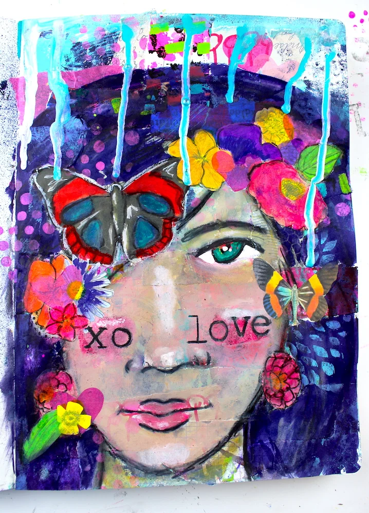 I love making messy backgrounds in my art journal and layering a quick portrait over the top! In this video for the Shawn Petite Creative Team, I'll show you how I add some quick layers to my art journal with oil pastels, acrylic paint and stencils, collage and more! You'll also learn how to sketch a simple face and blend in some oil paint sticks to add shadows and highlights and skin tones!